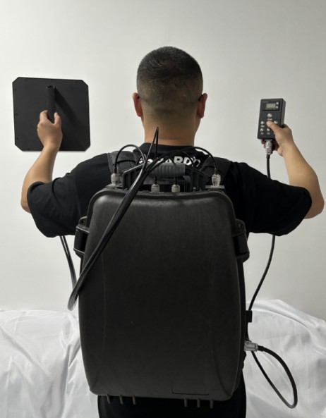 With the rapid growth of the drone market, drones are widely used in various aspects of society. However, their misuse, such as unauthorized flights in restricted zones, drug delivery, and military applications, has raised significant concerns. The DKSW-8D is designed to detect, deter, and force-land rogue drones within visual range. Custom-built to meet client needs, this backpack-style device features a built-in battery for extended portability and includes both omnidirectional and handheld directional antennas for versatile operation. Utilizing narrowband interference and RF suppression technologies, it disrupts the communication link between the drone and its controller, forcing the drone to return or land. Additionally, it blocks video transmission, preventing privacy breaches and securing critical areas.
